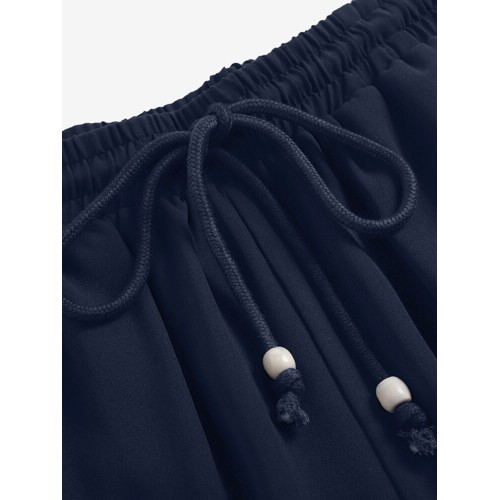 Women Pleats Casual Ankle Length Solid V-Neck Elastic Two-Piece Sets