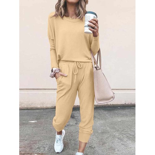Women Side Pockets Solid Fitting Maxi Length Casual Two-Piece Sets