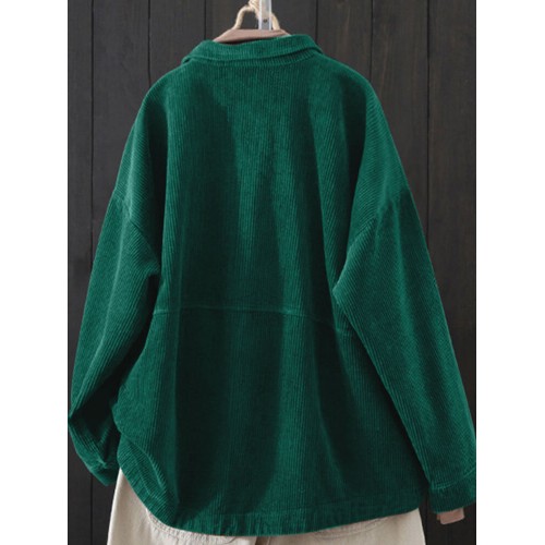 Corduroy Turn-down Collar Long Sleeve Vintage Casual Coats for Women