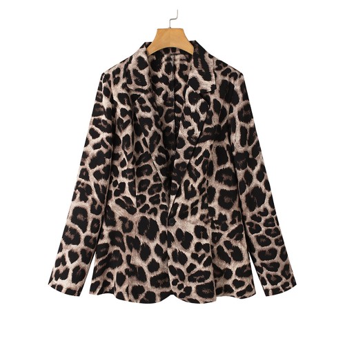 Leopard Print Blazer Loose Suit for Women with Shoulder Pad
