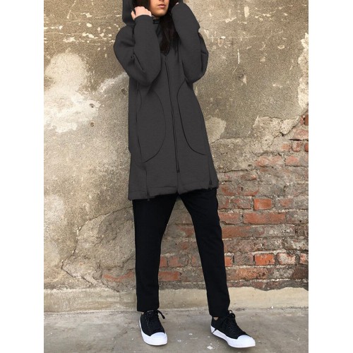 Winter Women Pure Color Fur Collar Hooded Thicken Coats