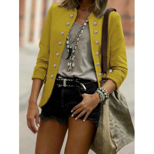 Women Button Front Vintage Solid Color Long Sleeve Stylish Blazer
