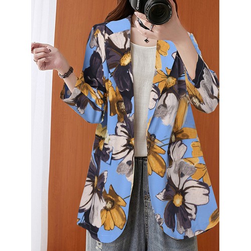 Women Full Sleeve Lapel Floral Bohemian Leisure Retro Thin Suit