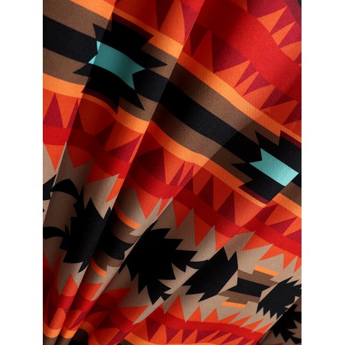 Women Hooded Fluffy Ethnic Pattern Patchwork Pocket Buttons Casual Coats