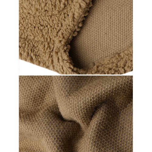 Women Solid Color Plush Borg Collar Warm Coat With Pocket
