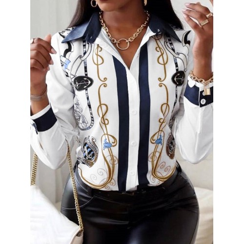 Description: Color:White,Yellow,Navy Closure Type:Button Decoration:Button Material:Polyester Neckline:Stand Collar Pattern Type:Polka Dot Scene:Leisure,Casual Season:Spring,Autumn Size:4XL,M,L,S,XL,5XL,2XL,3XL Sleeve:Three Quarter Length Sleeve Style:Casual,Work Thickness:Regular Package Included: 1*Blouse < |