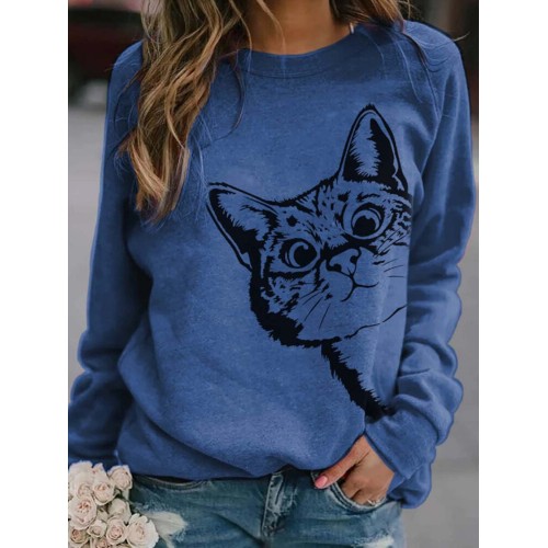 Description: Color:Purple,Blue Decoration:Pattern Material:Cotton Neckline:Round Neck Pattern Type:Animal,Plants Season:Spring,Autumn,Winter Size:M,L,S,XL,2XL,3XL Sleeve:Long Sleeve Package Included: 1*Blouse < |