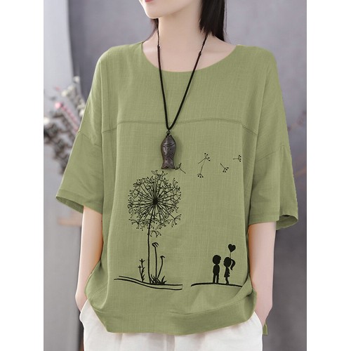 Description: Material:Cotton Neckline:Round Neck Pattern Type:Cartoon,Plants Scene:Leisure,Home,Casual Season:Spring,Summer Size:M,L,XL,5XL,2XL,3XL,4XL Sleeve:Half Sleeve Style:Casual,Bohemian style Thickness:Thin Package Included: 1*t-shirt < |