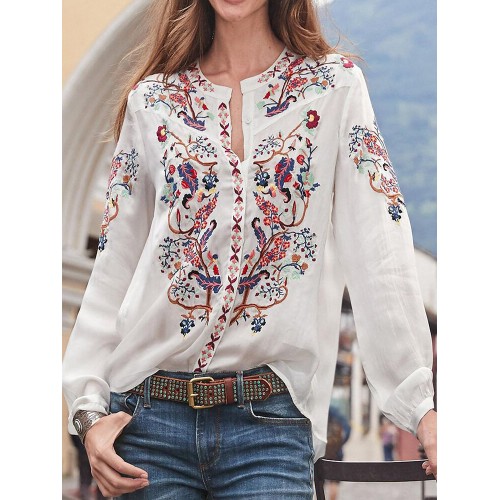 Description: Color:White,Yellow,Navy Closure Type:Button Decoration:Button Material:Polyester Neckline:Stand Collar Pattern Type:Polka Dot Scene:Leisure,Casual Season:Spring,Autumn Size:4XL,M,L,S,XL,5XL,2XL,3XL Sleeve:Three Quarter Length Sleeve Style:Casual,Work Thickness:Regular Package Included: 1*Blouse < |