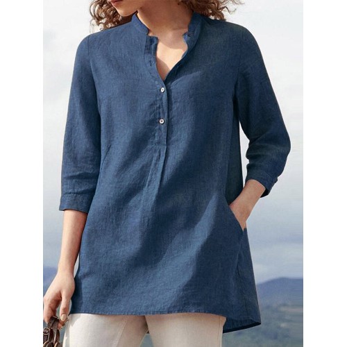 Description: Decoration:Button Elasticity:Inelastic Fit Type:Loose Fit Length:Short Material:Polyester Neckline:Stand Collar Pattern Type:Solid Season:Spring,Summer,autumn Size:M,L,S,XL,5XL,2XL,3XL,4XL Sleeve:Long Sleeve Style:Casual Thickness:Regular Package included: 1*Blouse < |