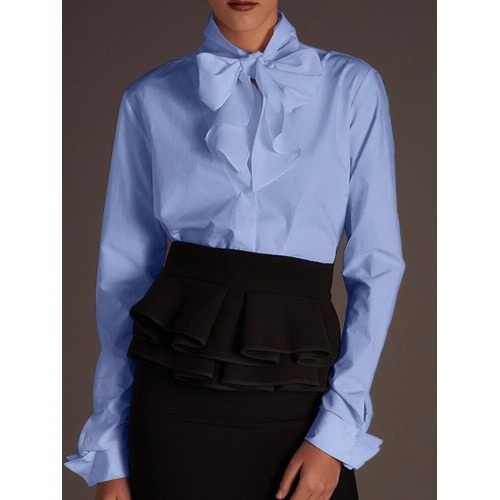 Women Casual Solid Color Tie Front Long Sleeve Simple Shirts