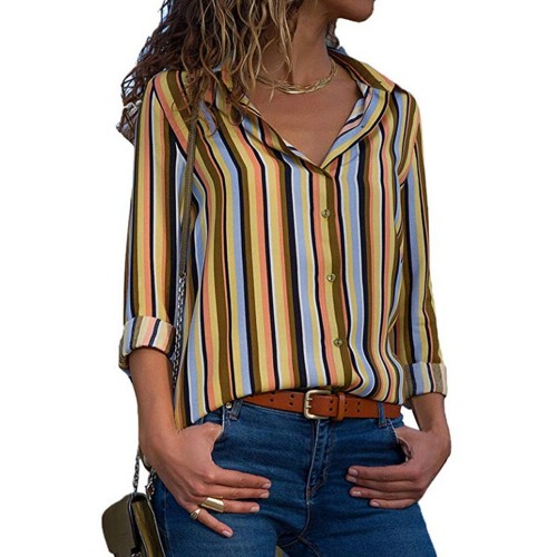 Women Casual V-Neck Solid Color Ruffles Long Sleeve Casual Blouse