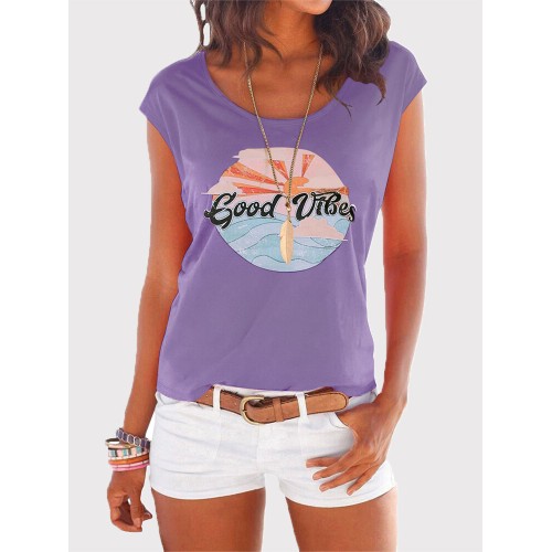 Women Daily Casual Print Short Sleeve T-shirts Wild Blouse