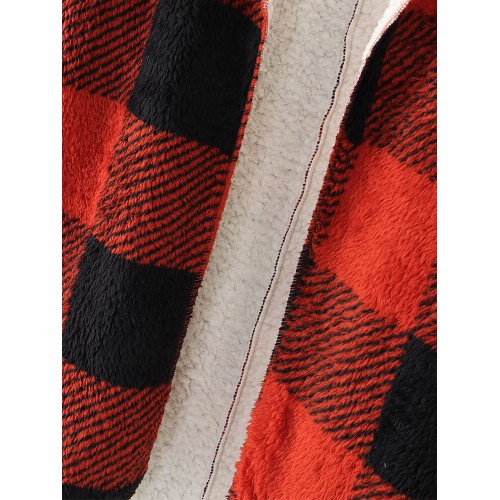 Women Plaid Fleece Hood Long Sleeve Warm Casual Hooded Sweatshirt