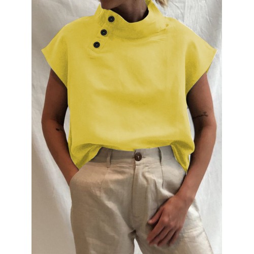 Description: Decoration:Button Elasticity:Inelastic Fit Type:Loose Fit Length:Short Material:Cotton Neckline:High Neck Pattern Type:Solid Season:Spring,Summer,Autumn Size:M,L,S,XL,5XL,2XL,3XL,4XL Sleeve:Short Sleeve Style:Casual,Stylish Thickness:Regular Package Included: 1*Shirt <  |