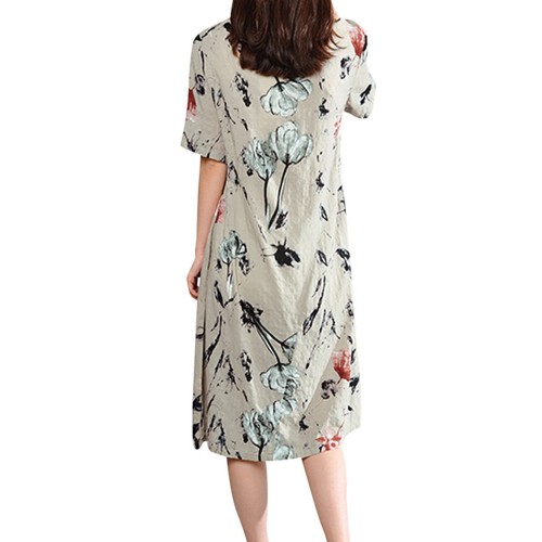 Description: Color:Grey,Beige Decoration:Pocket Fit Type:Loose Fit Material:Cotton,Rayon Neckline:Round Neck Pattern Type:Floral Season:Summer Size:M,L,S,XL,5XL,2XL,3XL,4XL Sleeve:Short Sleeve Style:Casual Package Included: 1*Dress < |