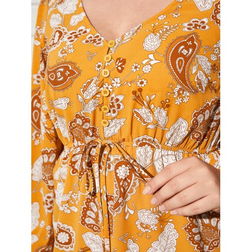 Occasion: Holiday Material: Woven Size: 0XL,1XL,2XL,3XL,4XL Fit: Regular Fit Season: Spring,Autumn,Winter Color: Yellow,Green Detail: Button Design,Tie-up Design Neckline: V-neck Sleeves Type: Puff Sleeves Sleeves: Long Sleeves Pattern: Paisley Dresses Length: Midi < |